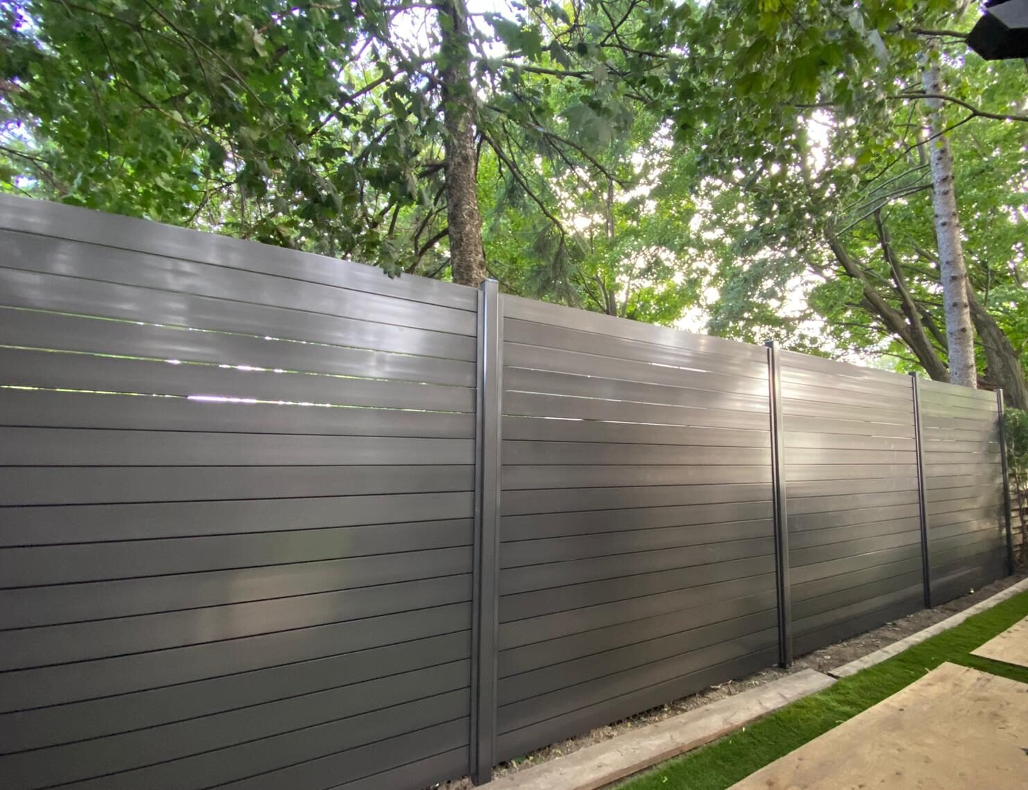 Aluminum Horizontal Slat Fence Options Color Options: Black Pewter White Any Architectural PPG Color 1″ x 5″ Horizontal Slat Fencing 1″ x 3″ Horizontal Slat Fencing 1″ x 2″ Horizontal Slat Fencing 1″ x 1″ Horizontal Slat Fencing MORE FENCING OPTIONS Aluminum Composite Fencing Aluminum Corrugated Fencing Horizontal Vinyl Fence Panels (Aluminum Framing) Aluminum Picket Fencing